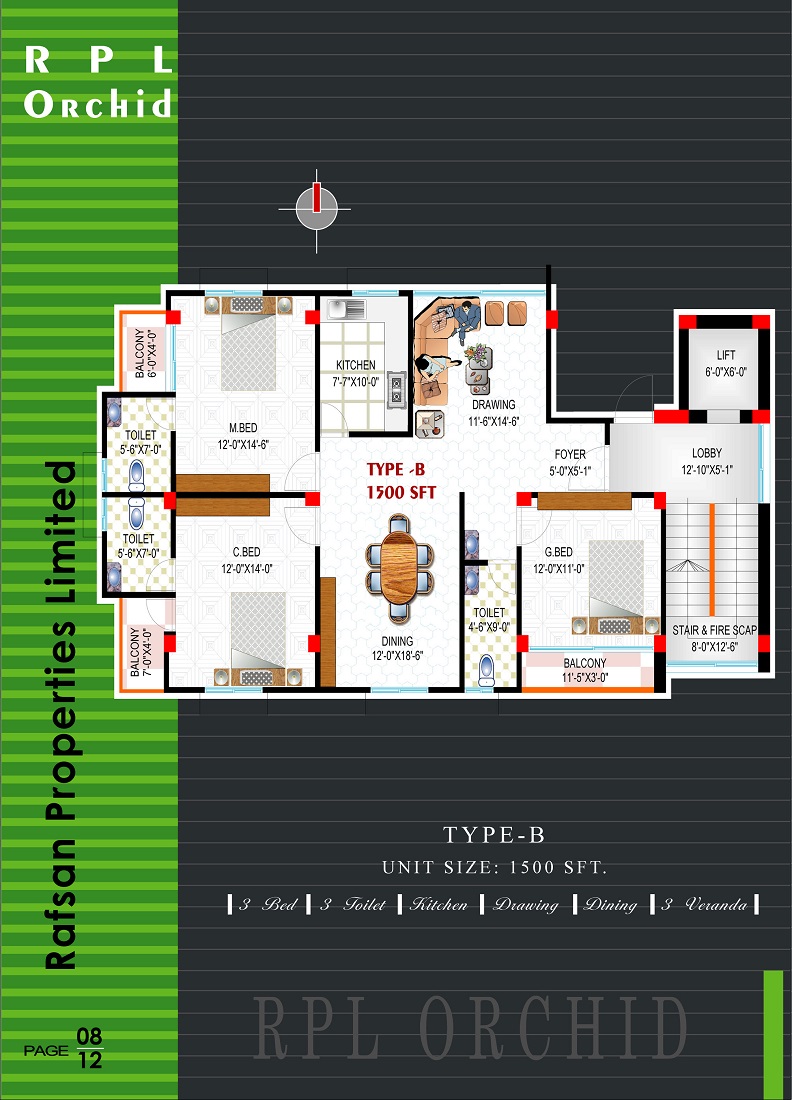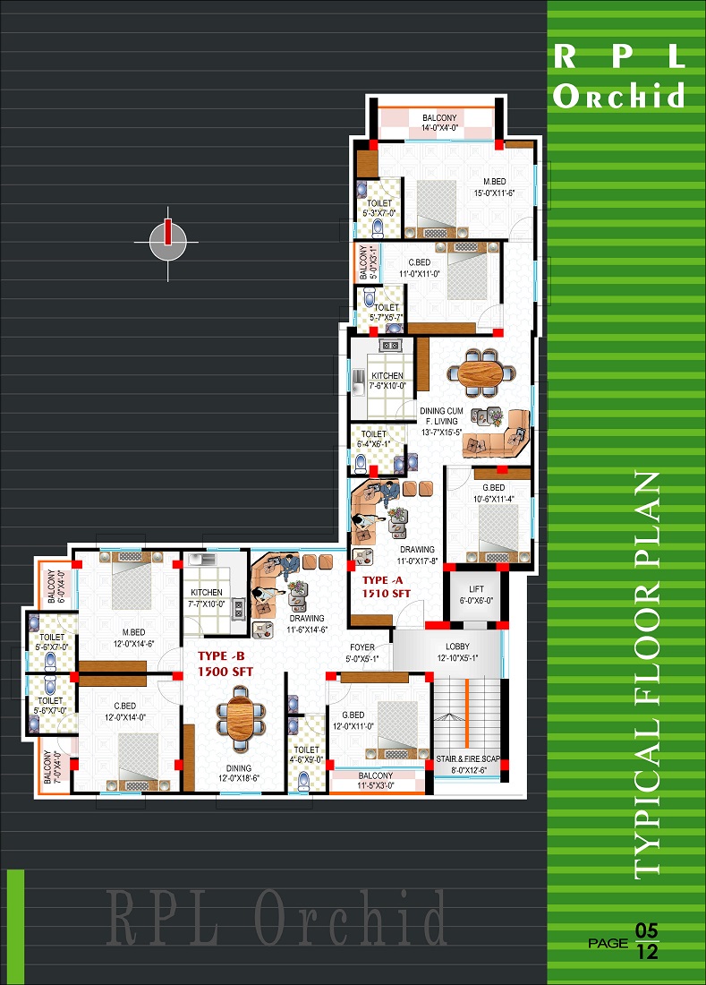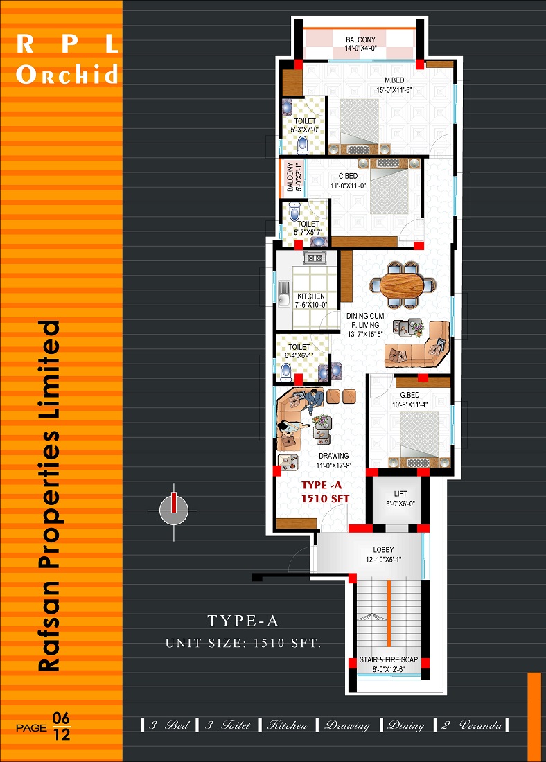 Apartment Size : Type A- 1510 sft