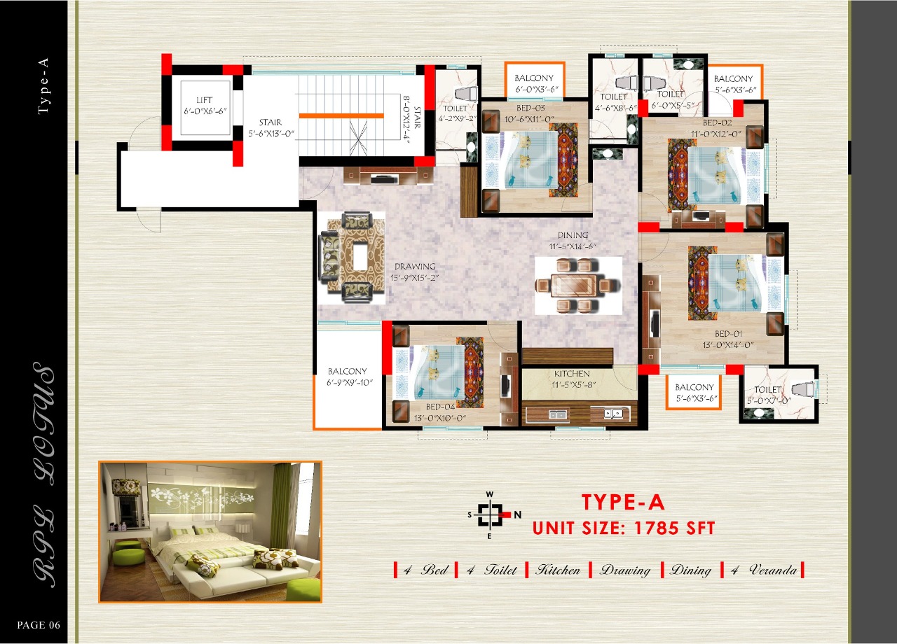 Apartment Size : Type A- 1785 sft.